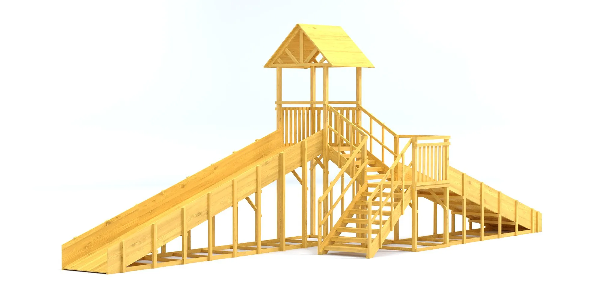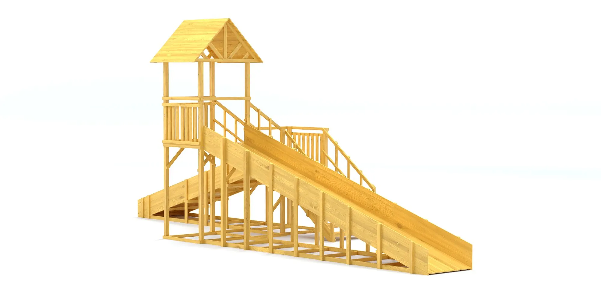 ПодробнееКаркас сделан из прочного клеёного бруса. Скруглённые углы, ограждения и перила делают катание безопасным даже для малышей.