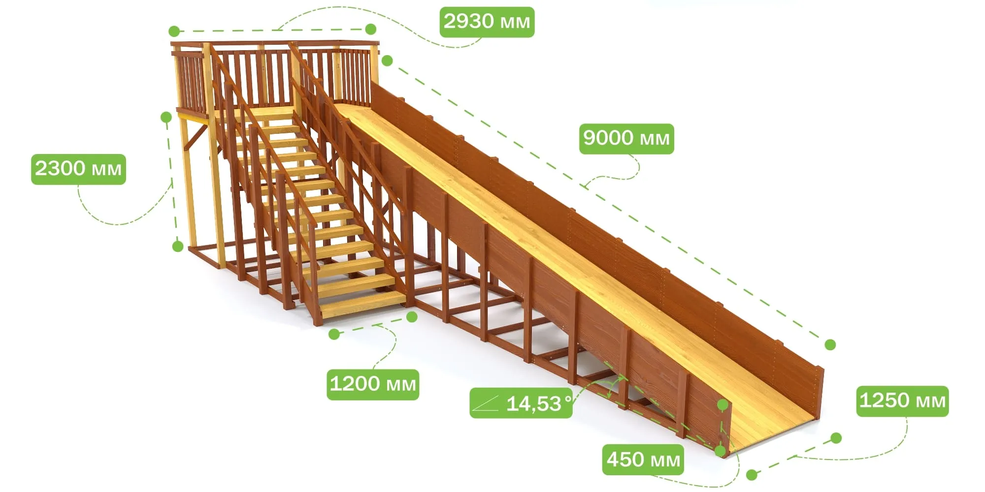 Зимняя горка Савушка Зима Wood 8 — это заливной скат длиной 9 метров, который имитирует настоящую снежную гору. Отличный вариант для дачных участков, частных домов и небольших общественных площадок. Горка выполнена из прочного клееного бруса, соответствует ГОСТ и имеет Декларацию о соответствии ТР ЕАЭС 038/2016. На фото эта же модель в цвете Махагон / Сосна (см. раздел Савушка Зима).