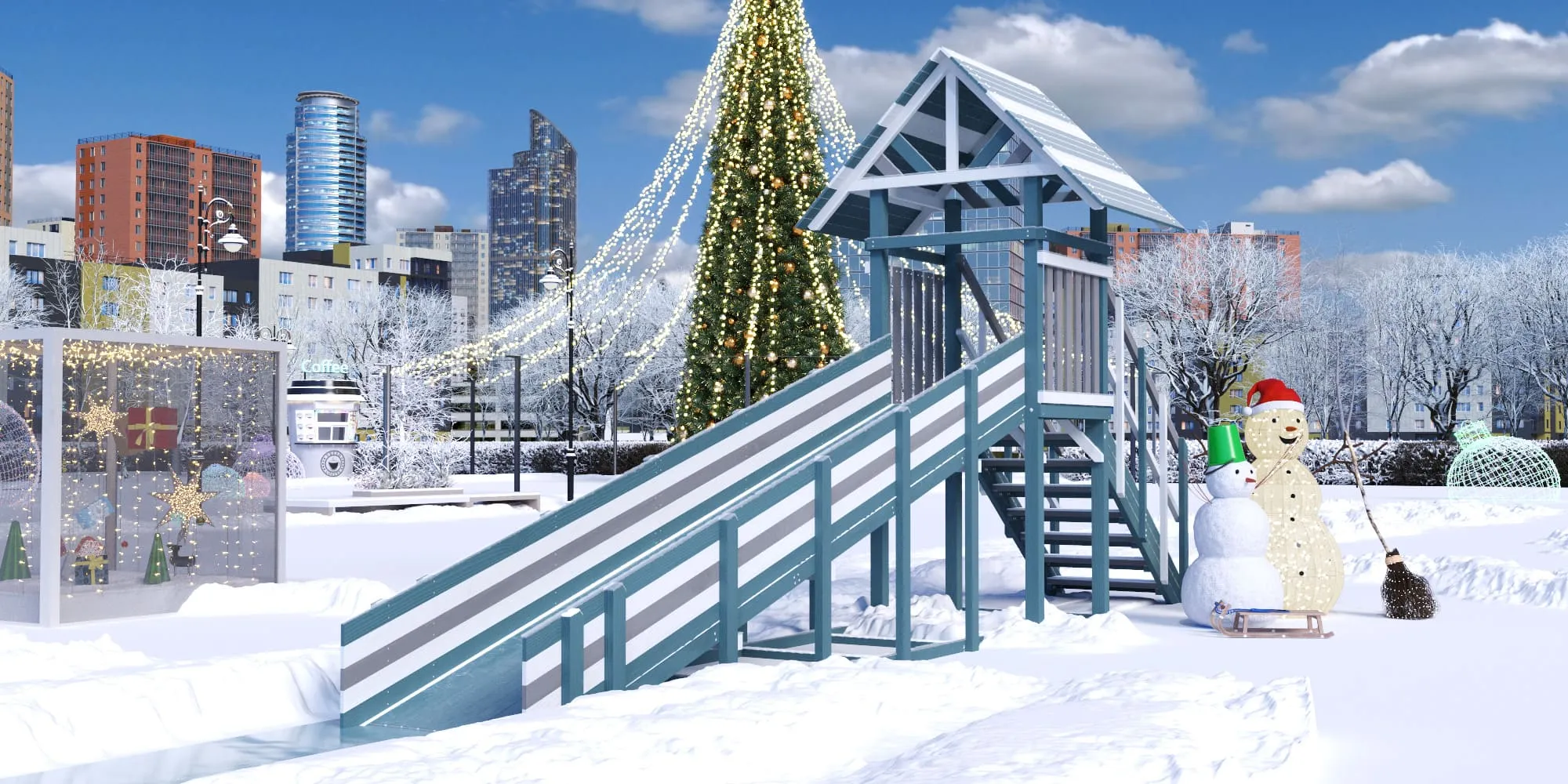 - Скат длиной 5 м идеально подходит для катания на ледянках и тюбингах.