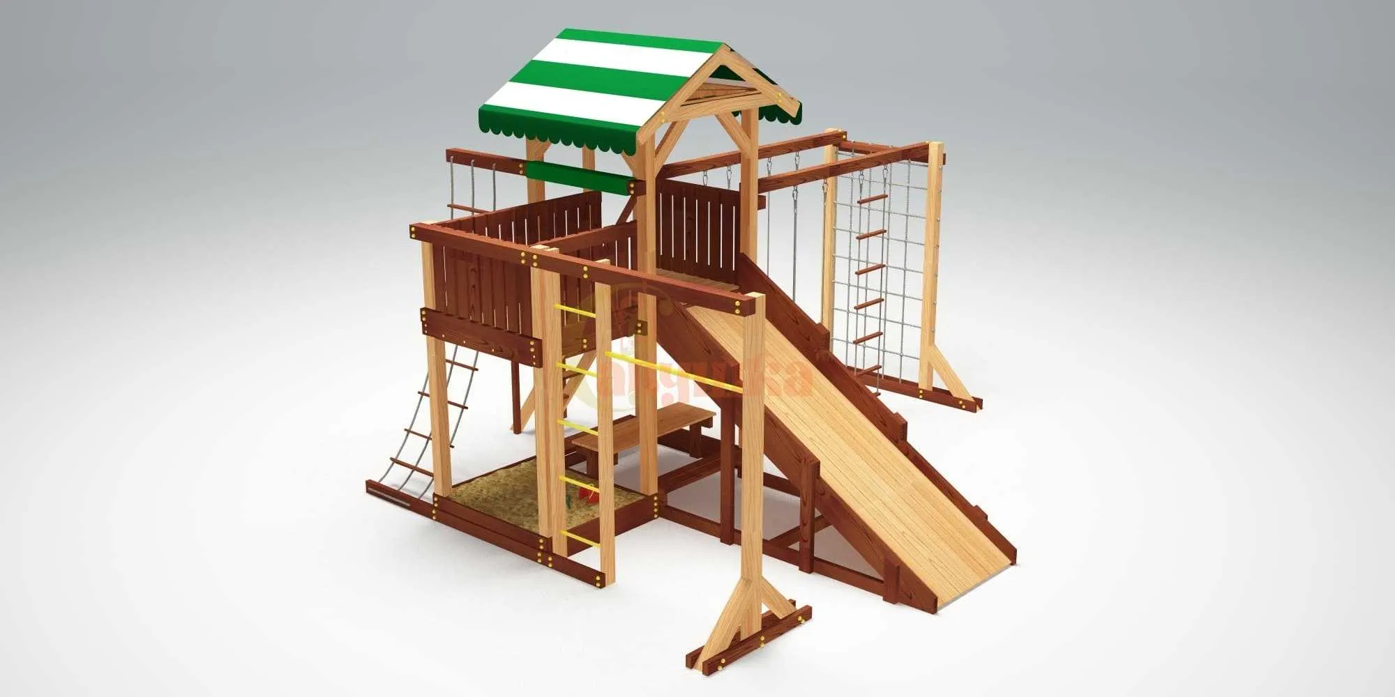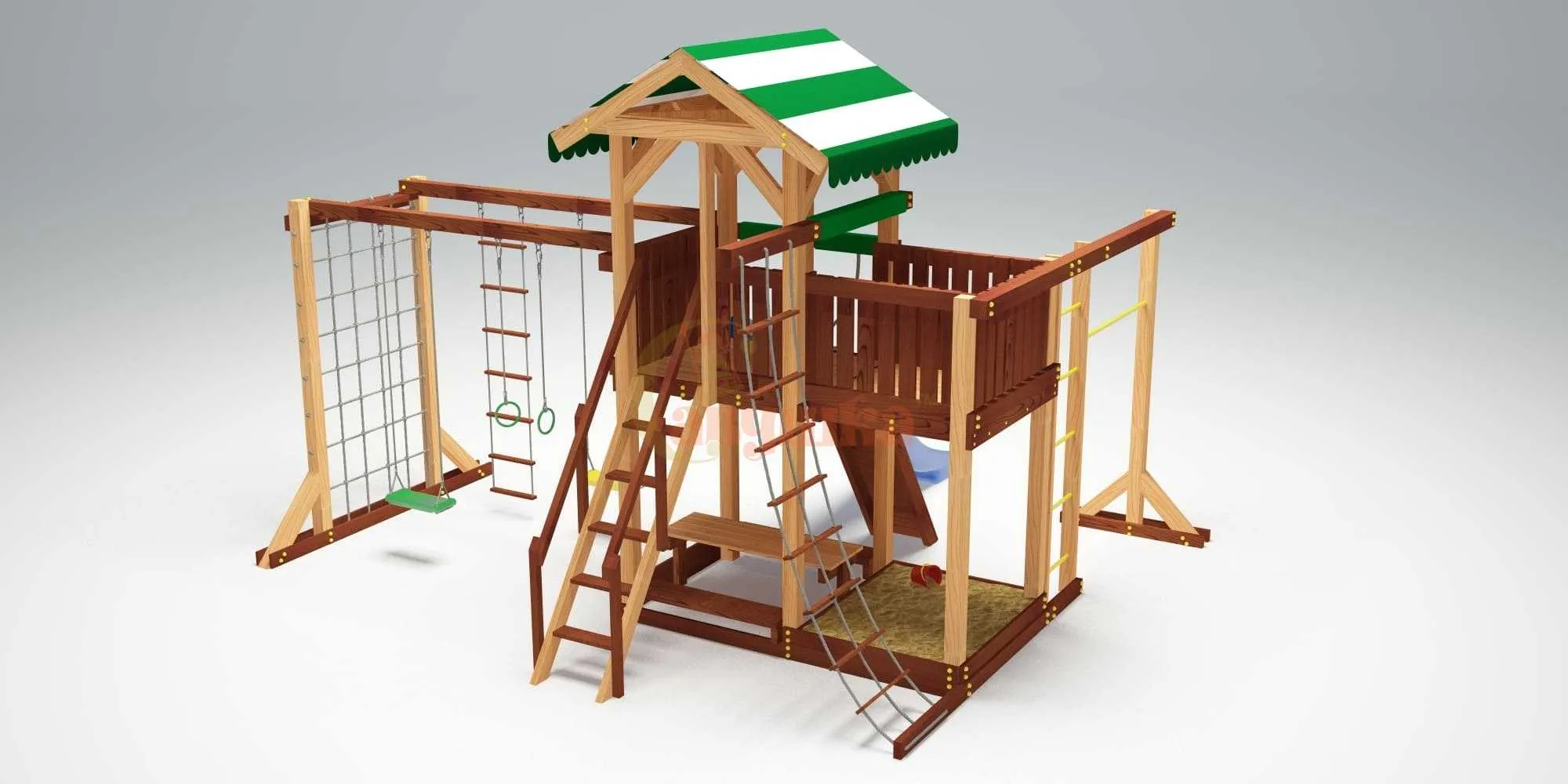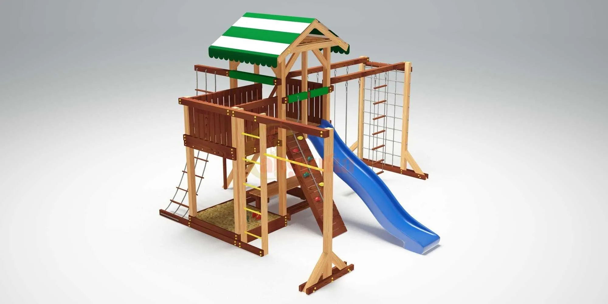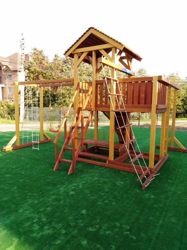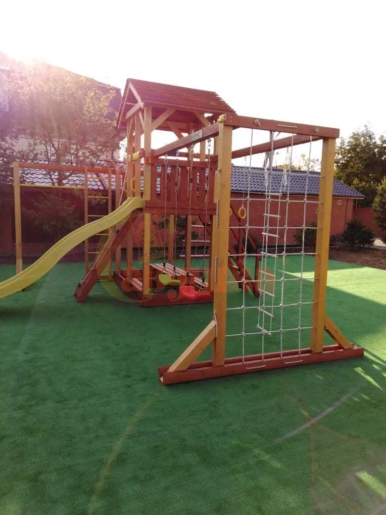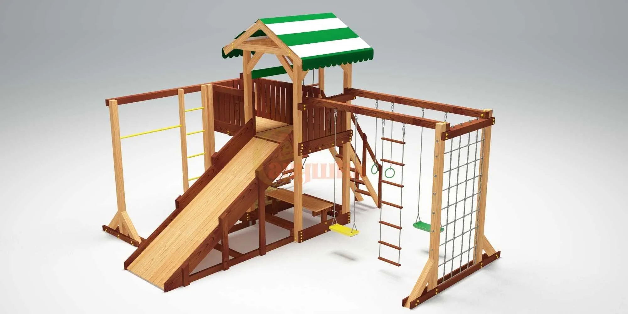 Все балки и опоры соответствуют ГОСТ и выдерживают активные игры на протяжении многих лет. Площадка устойчива к влаге и морозу, подходит для круглогодичного использования.