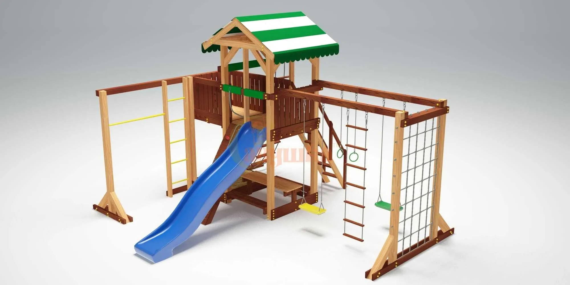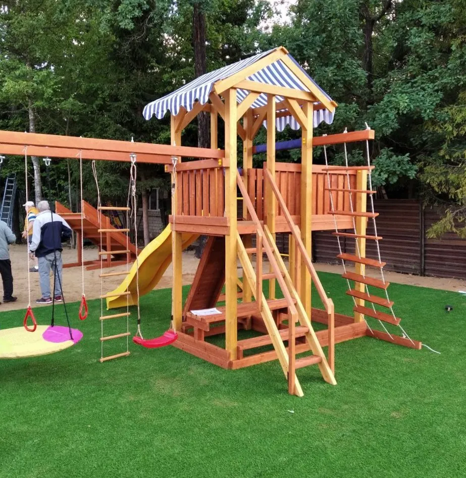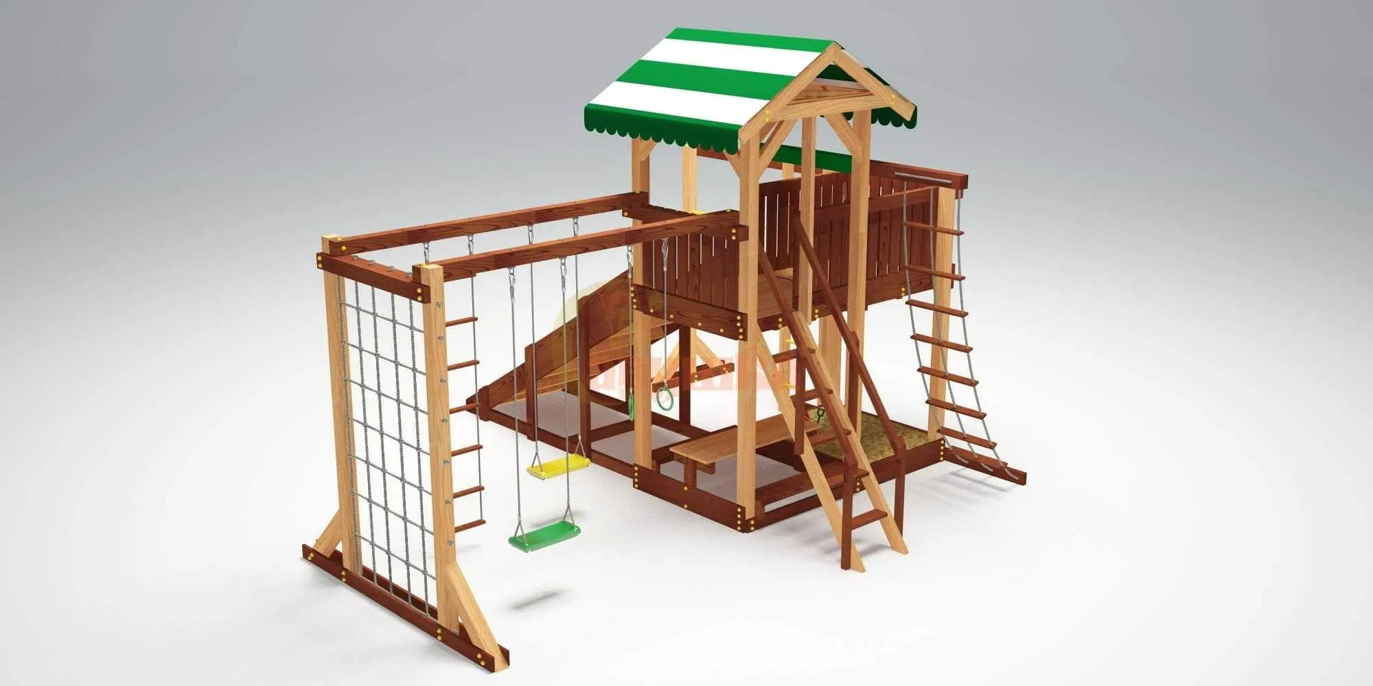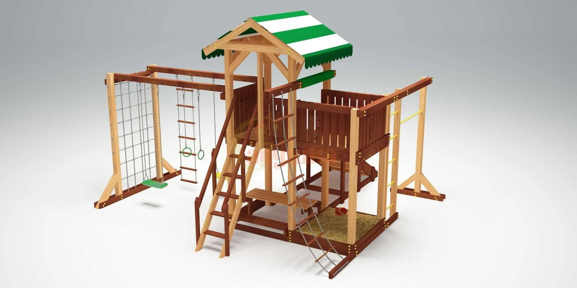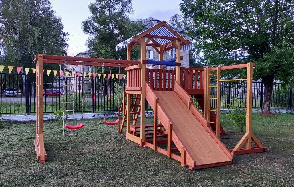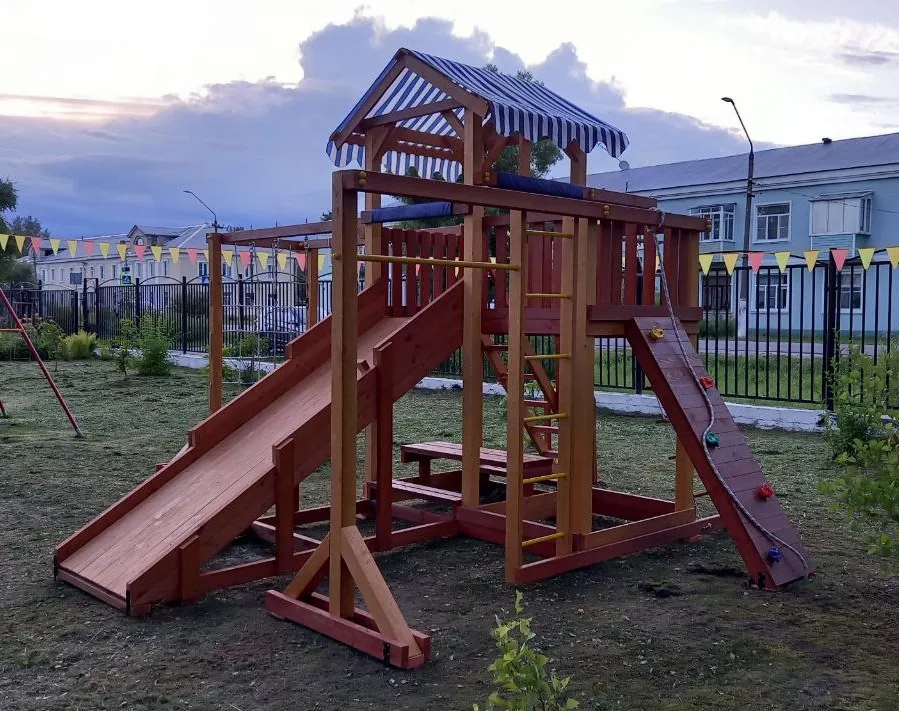 Все балки и опоры соответствуют ГОСТ и выдерживают активные игры на протяжении многих лет. Площадка устойчива к влаге и морозу, подходит для круглогодичного использования.