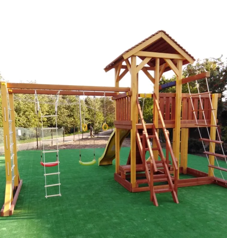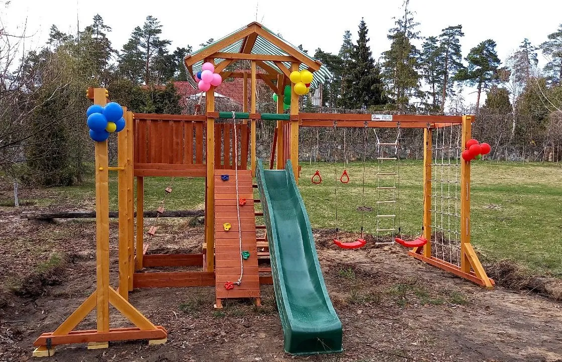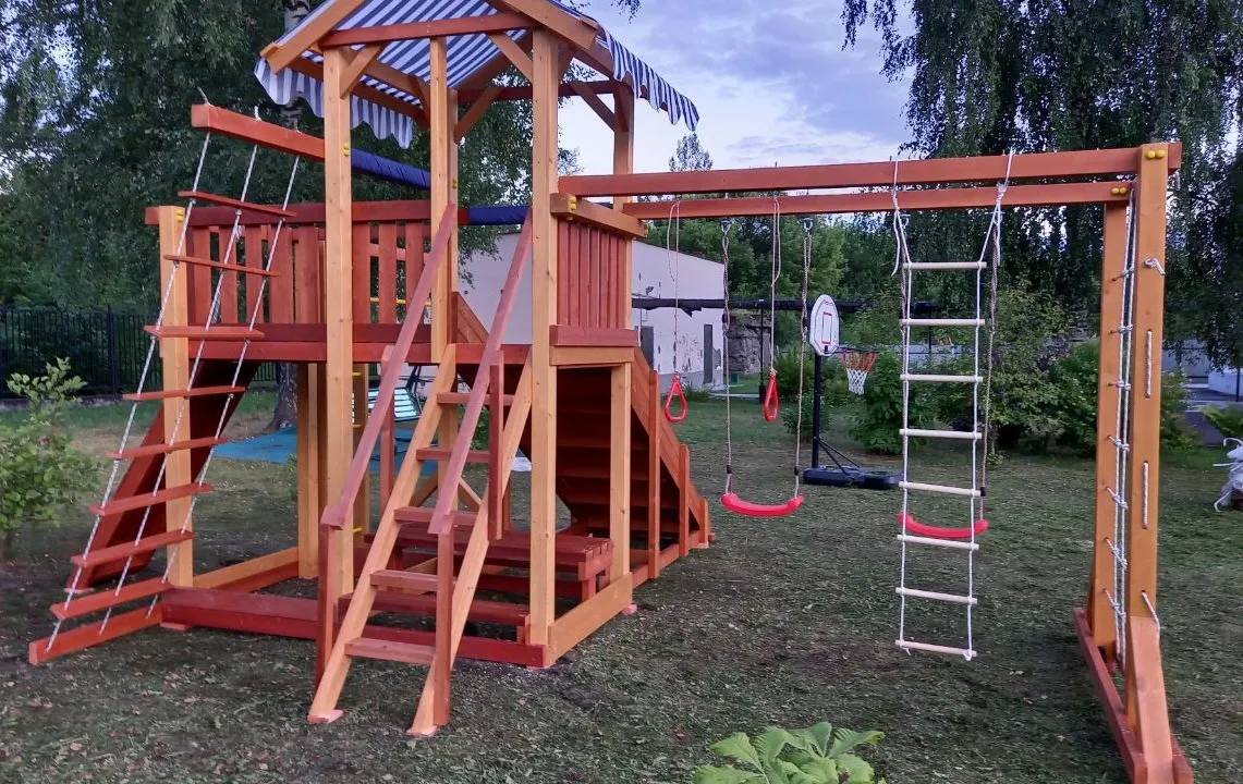 - Шведская стенка, гимнастические кольца, трапеция и верёвочная лестница — для спорта и развития координации.