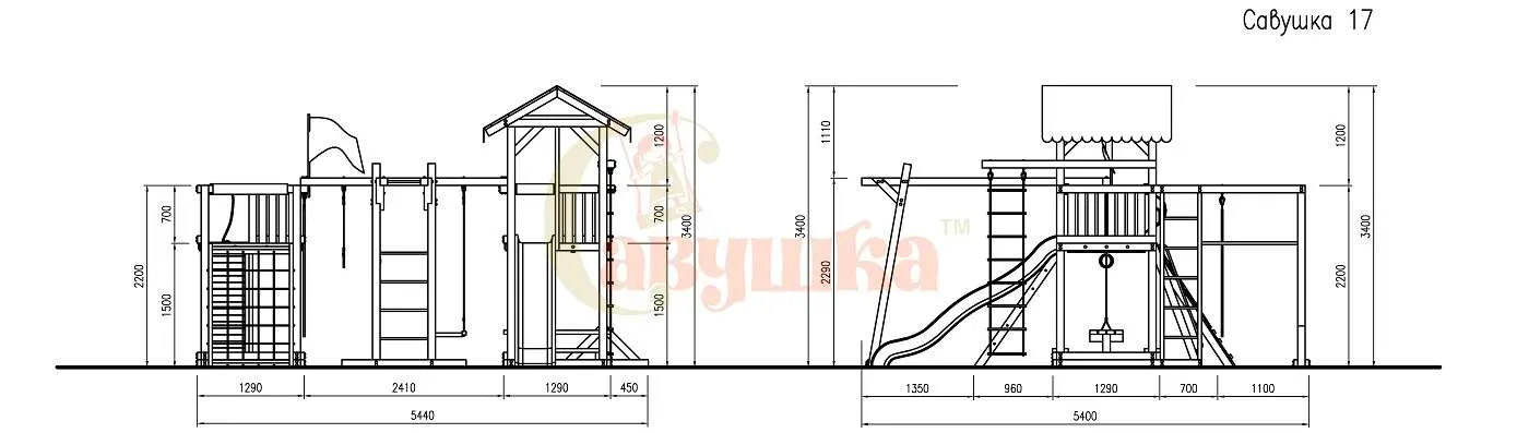 Савушка 4 Сезона 8 — площадка с максимальной комплектацией спортивно-игровых элементов при габаритах всего 5,5×5,4 м. Подходит даже для небольшого двора, превращая его в мини-парк приключений.