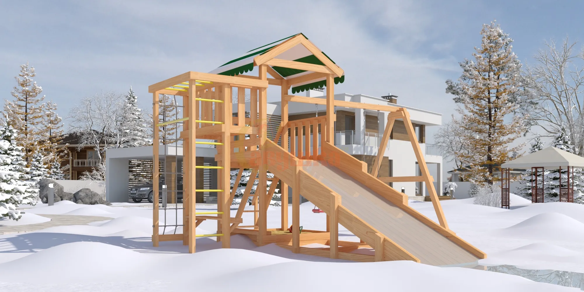 Мастер 3 — компактный, но насыщенный игровой комплекс для детей от 3 до 9 лет. Летом — горка и качели, зимой — скат для тюбингов. Один комплект — для всех сезонов и настроений.