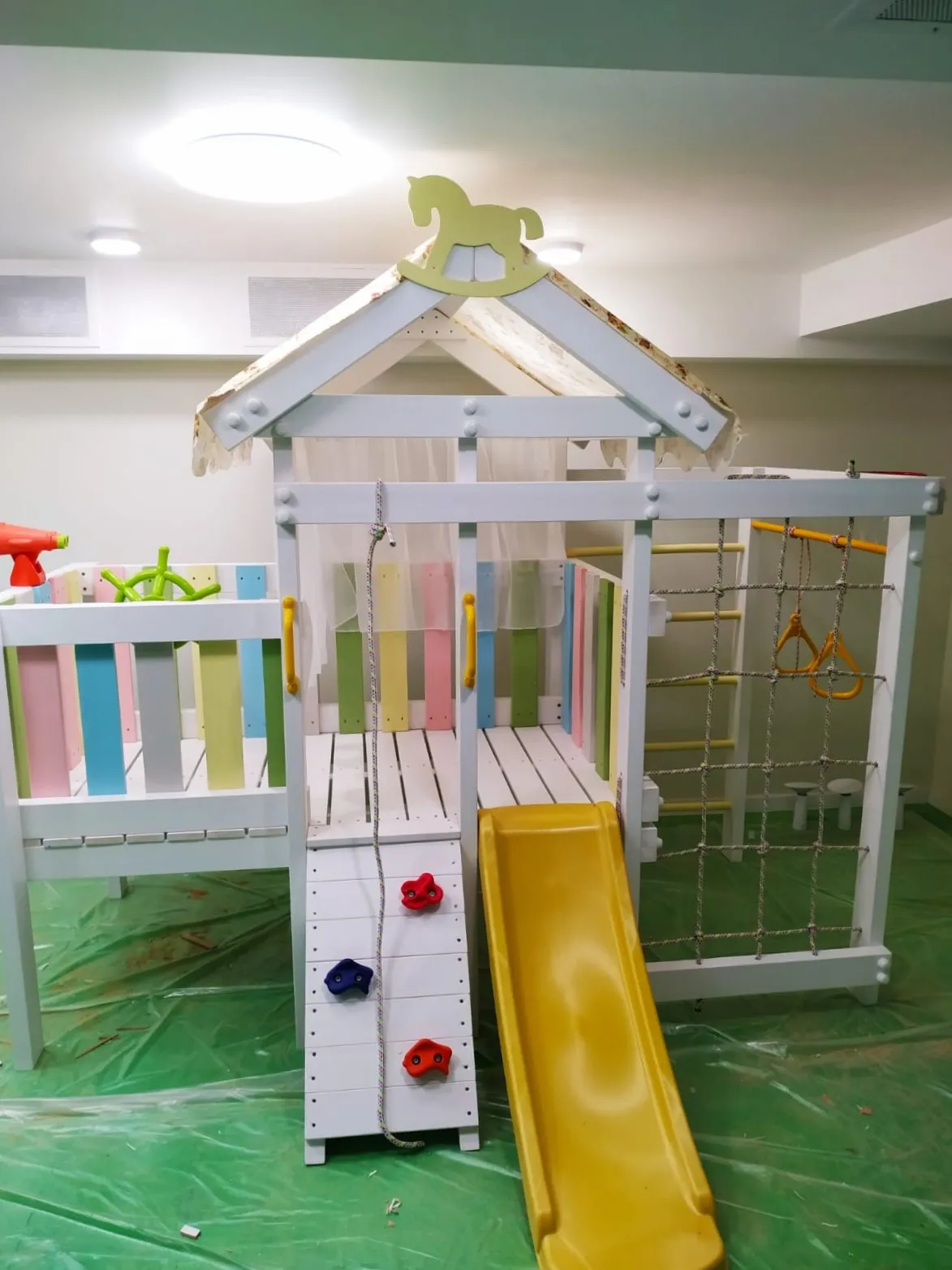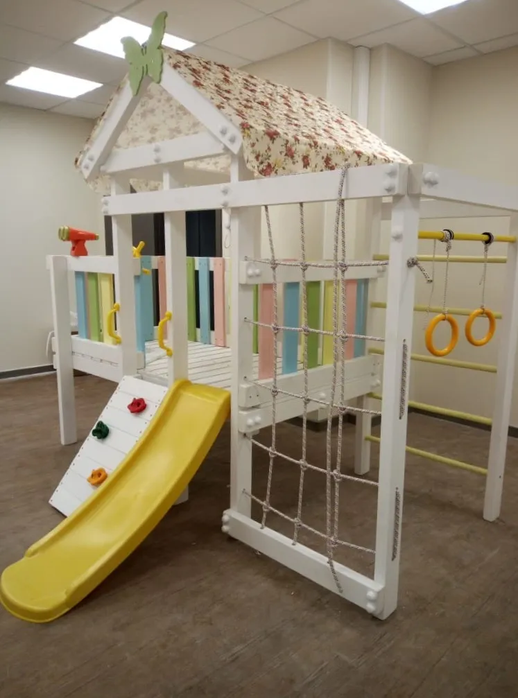 Играя на нашей площадке, ребята развивают силу и ловкость, укрепляют здоровье, получают массу энергии и положительных эмоций!Дополнительно к этой модели можно заказать веревочную лестницу, подзорную трубу, боксерскую грушу и другое оборудование (полный список опций есть на сайте). Такая детская площадка отлично подойдет для дачи или частного дома.