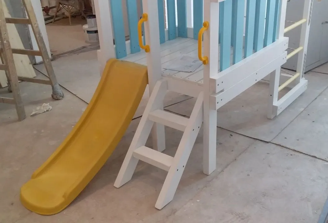 Металлические компоненты обрабатываем порошковой краской. Это красивое и долговечное решение: она не стирается годами. Наша компания уделяет большое внимание безопасности - все углы закруглены, а болты прикрыты защитными заглушками. Снять их ребенок не сможет.