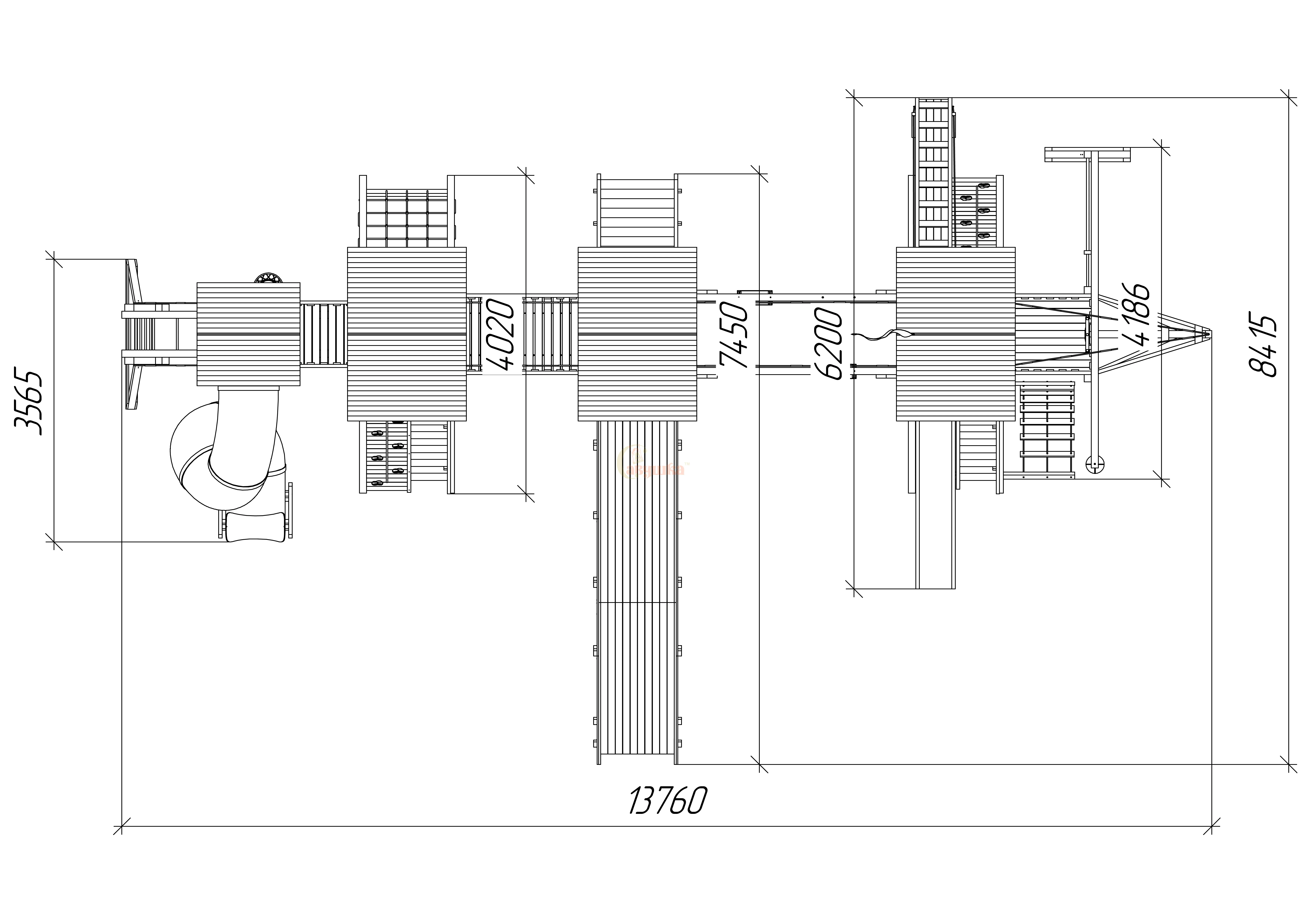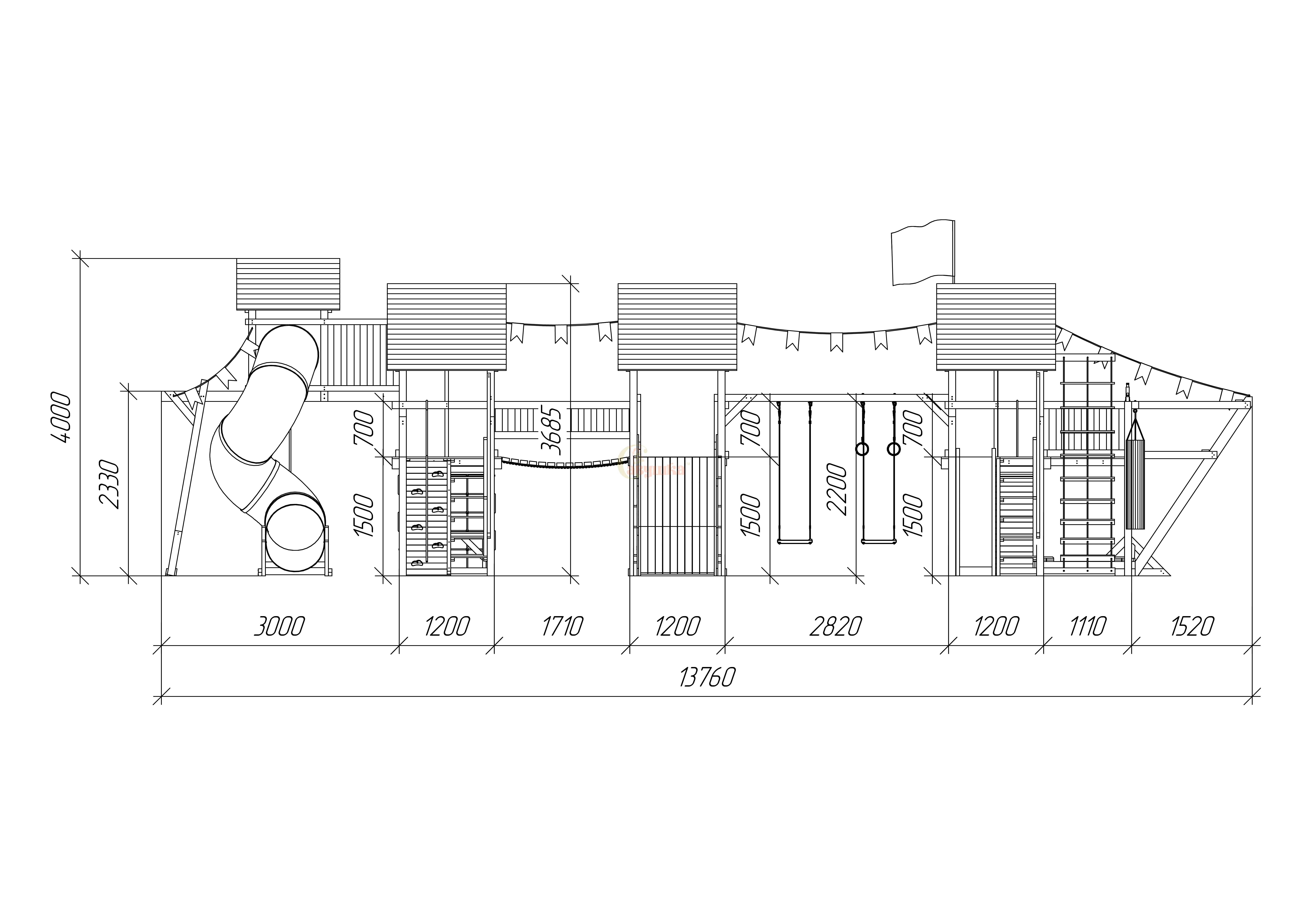 Каркас из клеёного бруса 130×90 мм, прочные узлы и сертифицированная краска в два слоя. Всё соответствует ГОСТ и выдерживает любые нагрузки. Безопасность — без компромиссов: все крепежи закрыты заглушками, углы скруглены.