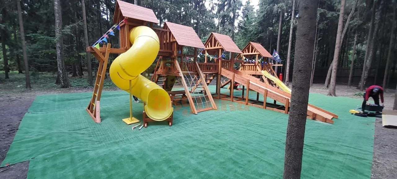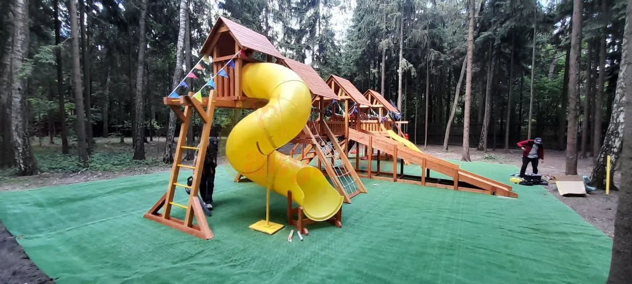 Люкс 1 MAX подходит для установки на даче, во дворе или в детском центре. Прекрасно переносит зиму, дождь и солнце — площадка всесезонная.