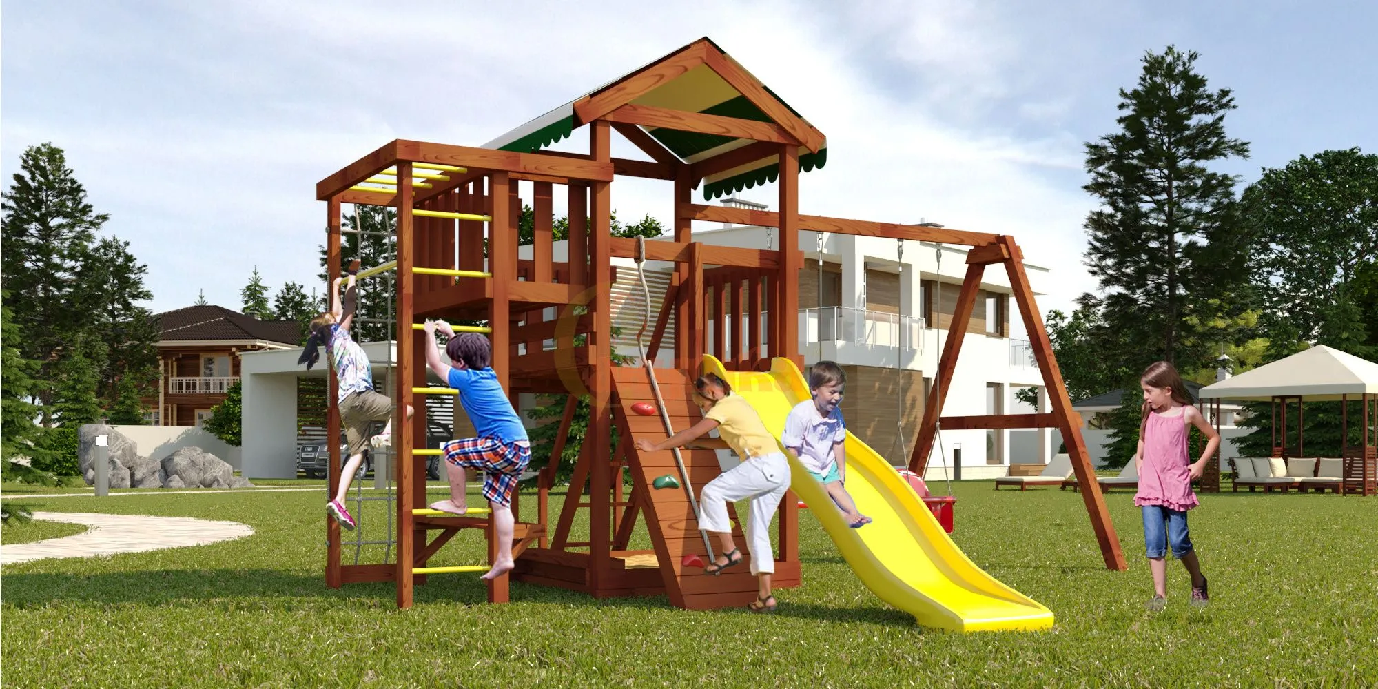 При покупке детской площадки с 8 июля по 30 ноября — плетёное кресло-гамак в ПОДАРОК!
