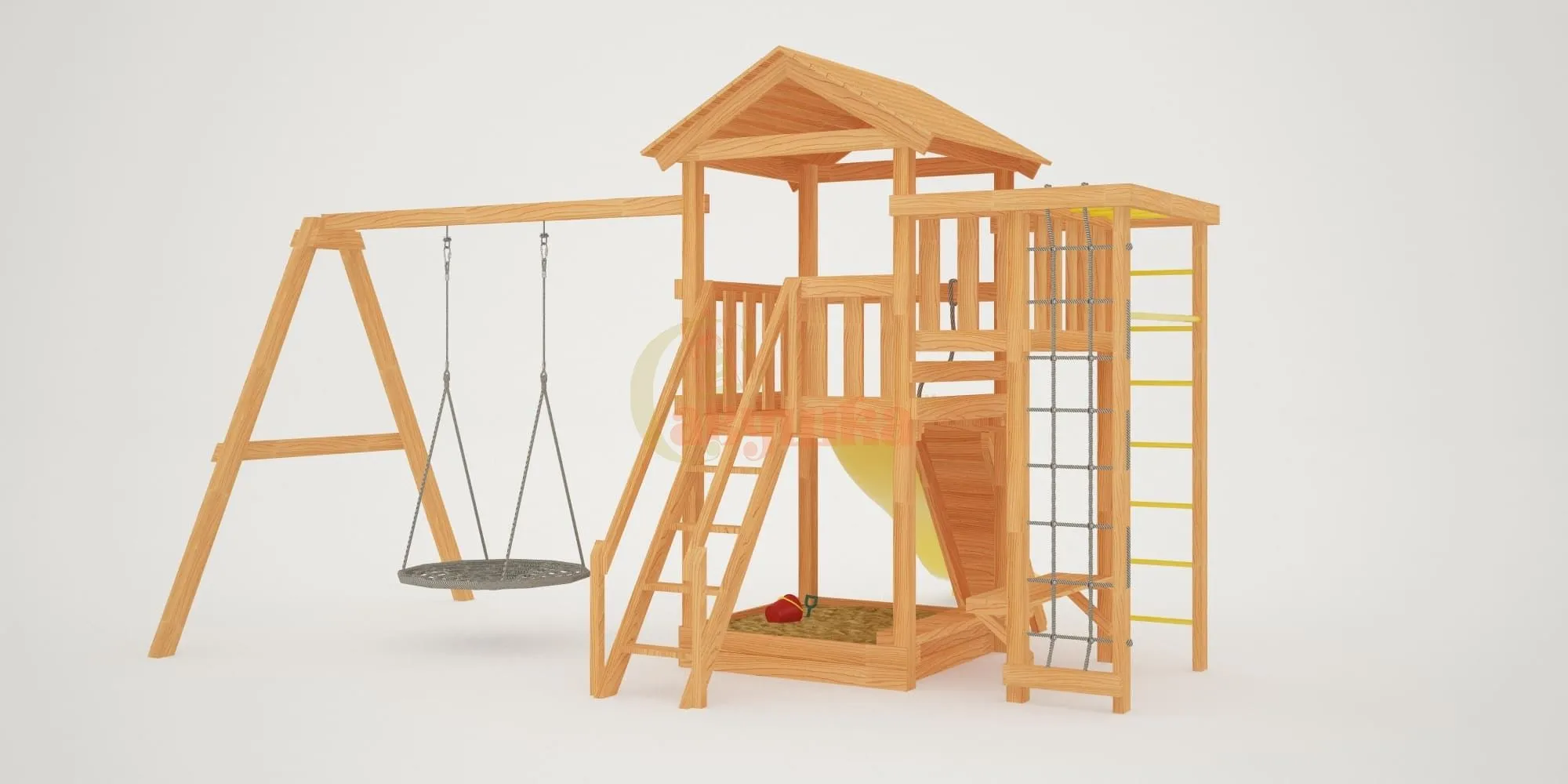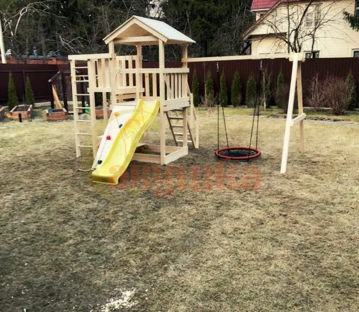 Детская площадка Савушка Мастер 3 с качелями Гнездо 1 метр