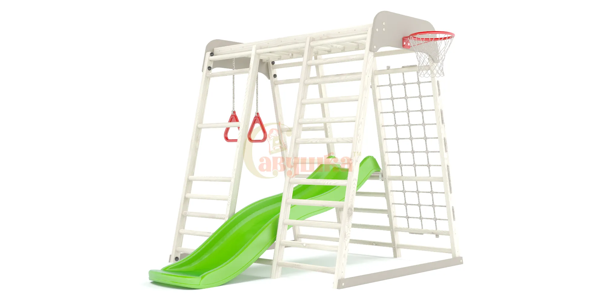 Основа игрового комплекса прочный деревянный каркас, сделанный из сосны (сечение 30 х 50 мм). Это экологичный, безопасный материал. Цвет и тип покрытия зависит от пожеланий клиента.