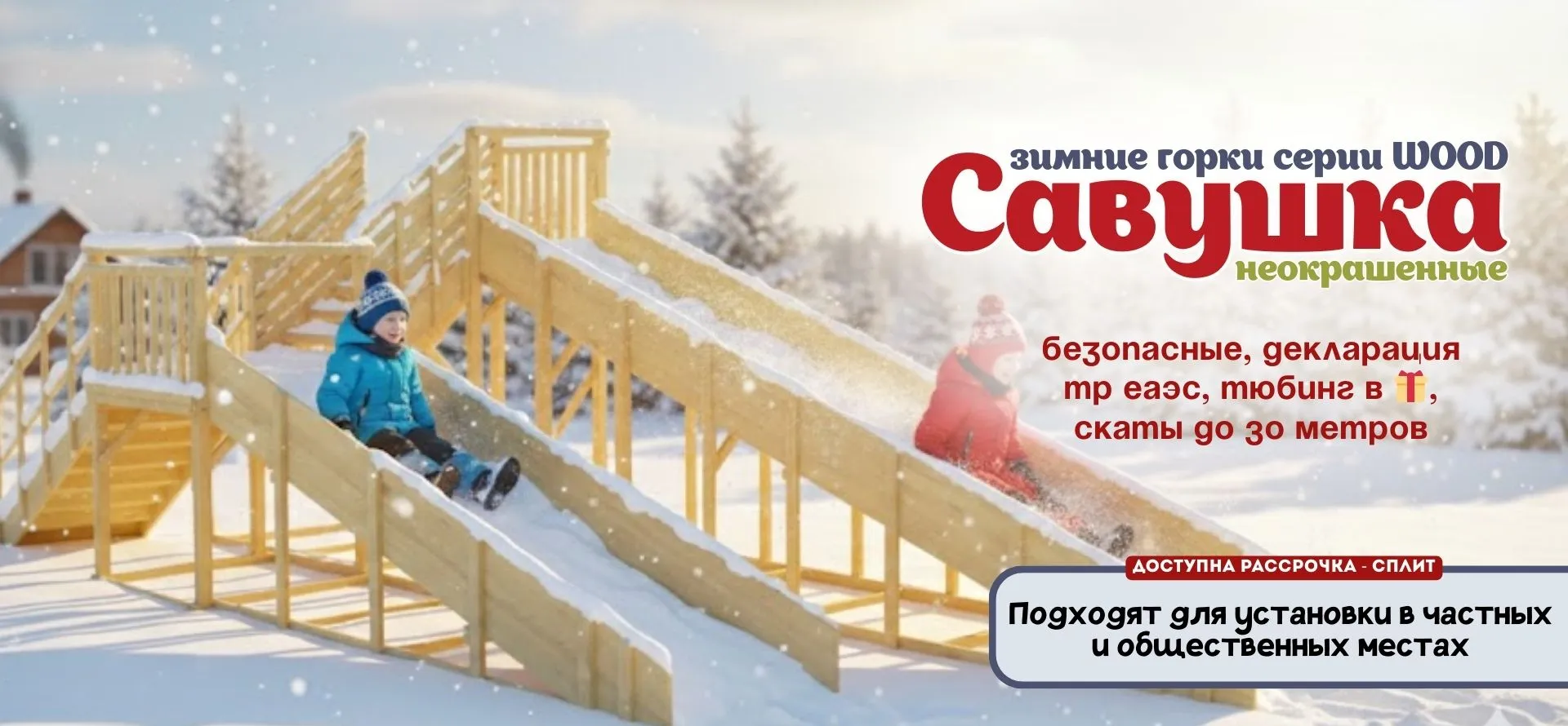 Катание на тюбингах, снегокатах или ледянках — это яркие эмоции и радость для детей любого возраста. Скорость, ветер и скольжение по снежной поверхности делают зимние прогулки незабываемыми. Однако далеко не всегда поблизости есть подходящий холм или парк. А если он и есть, часто возникает вопрос безопасности.Горки серии «Савушка Зима Wood» помогают наслаждаться катанием без лишних рисков. Эти модели популярны как среди частных клиентов, так и у домов отдыха, спортивных парков и государственных организаций. Все горки сертифицированы (Декларация ТР ЕАЭС 038/2016), а в серии есть как крупные модели, так и компактные варианты для частного участка или дачи.