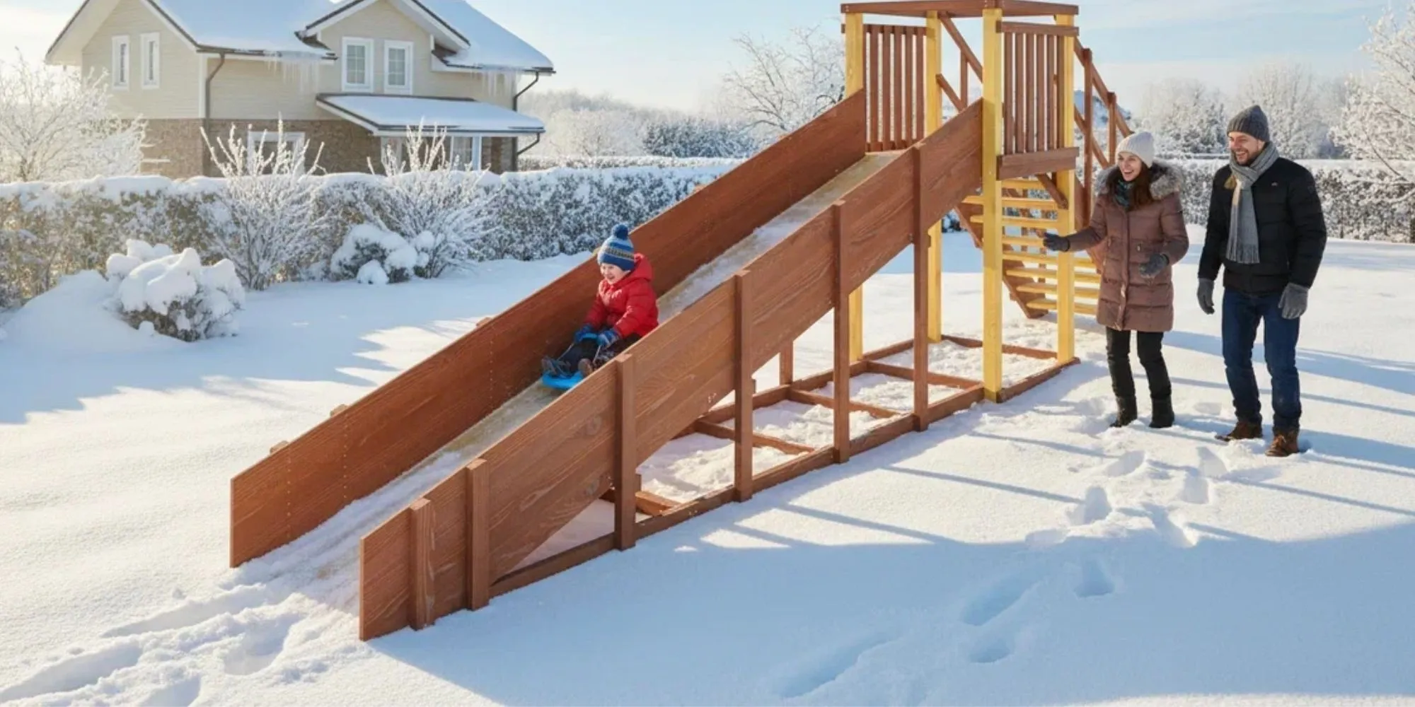 Зимняя горка Савушка Зима 2 со скатом 5 метров — это отличный выбор для небольшого дачного участка или двора. Она дарит детям радость активного отдыха и безопасное катание зимой.