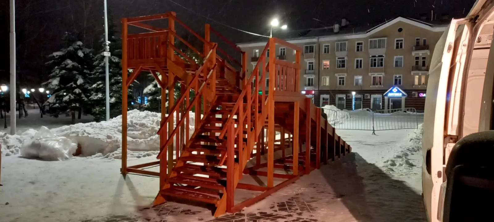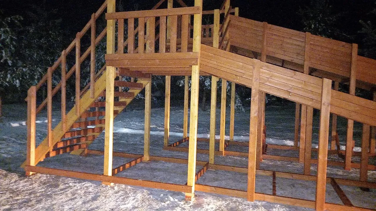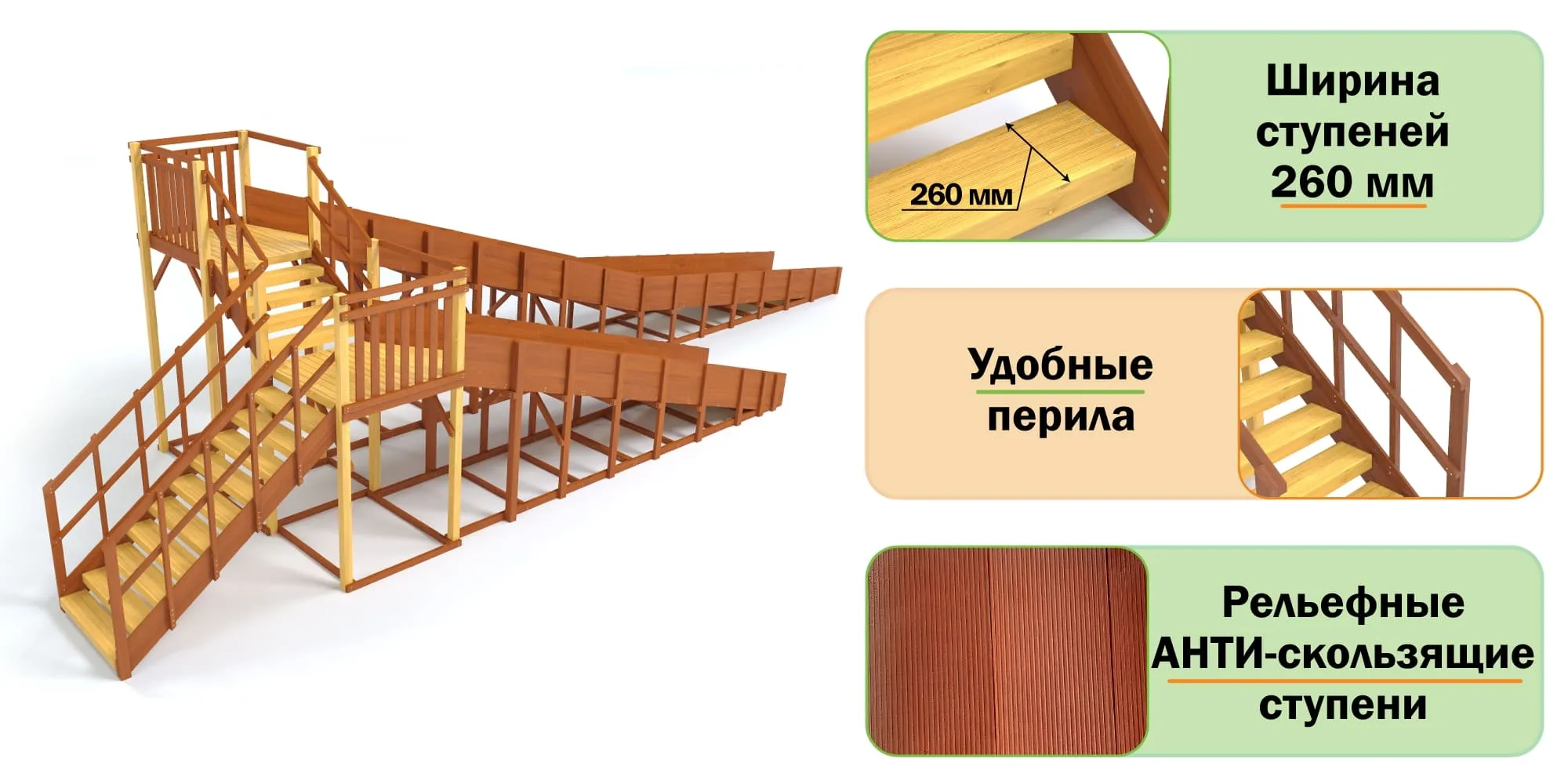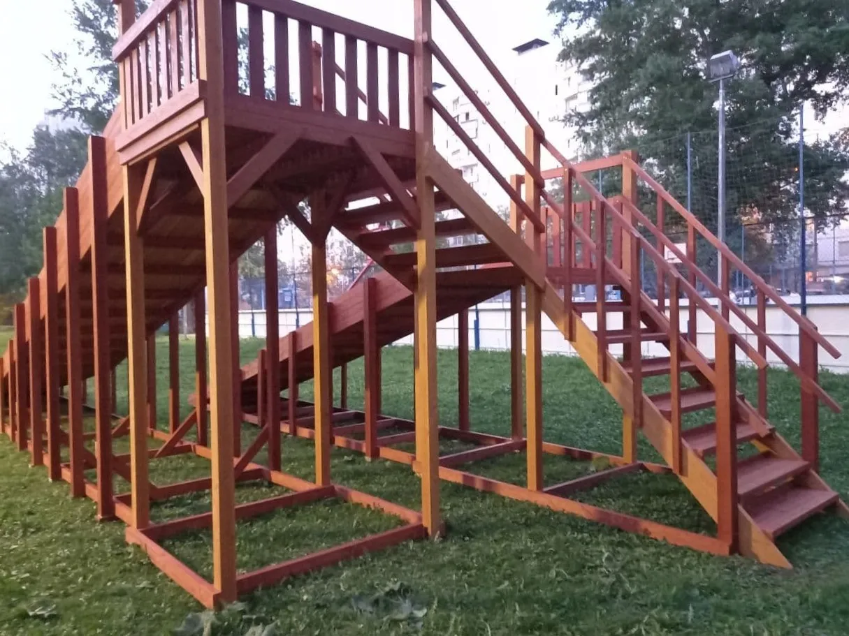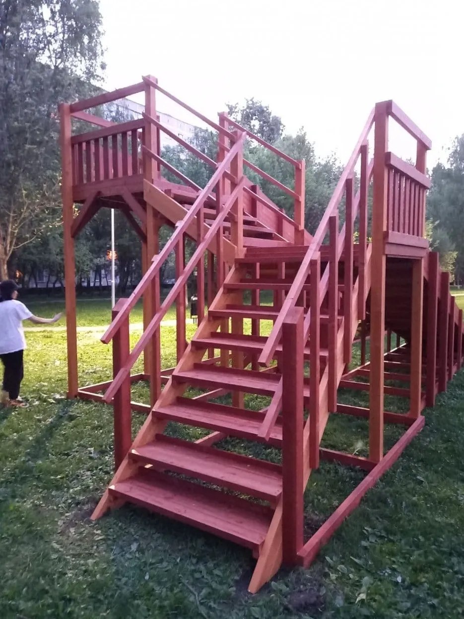 - Широкие ступени и надёжные ограждения обеспечивают безопасность.