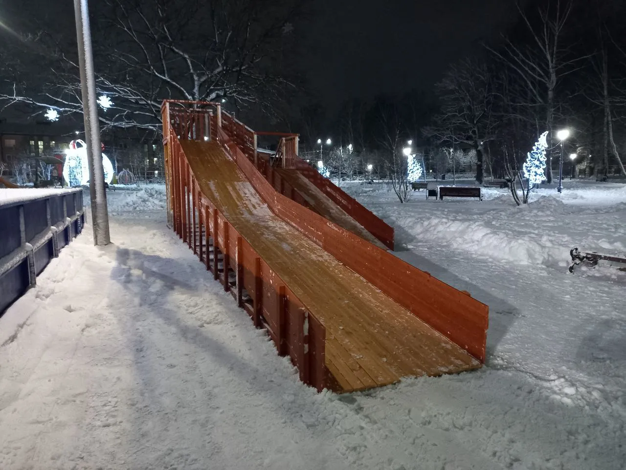Зимняя горка Савушка Зима 9 — готовый зимний аттракцион уровня городского парка, который можно установить прямо у себя на участке. Модель создана для семей, которым важны безопасность, качество и долговечность. Два ската разной высоты позволяют кататься детям от 4-5 лет до подростков.