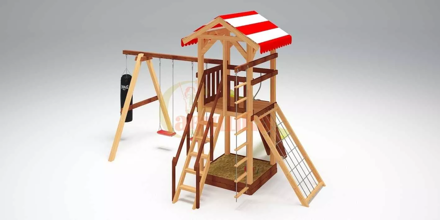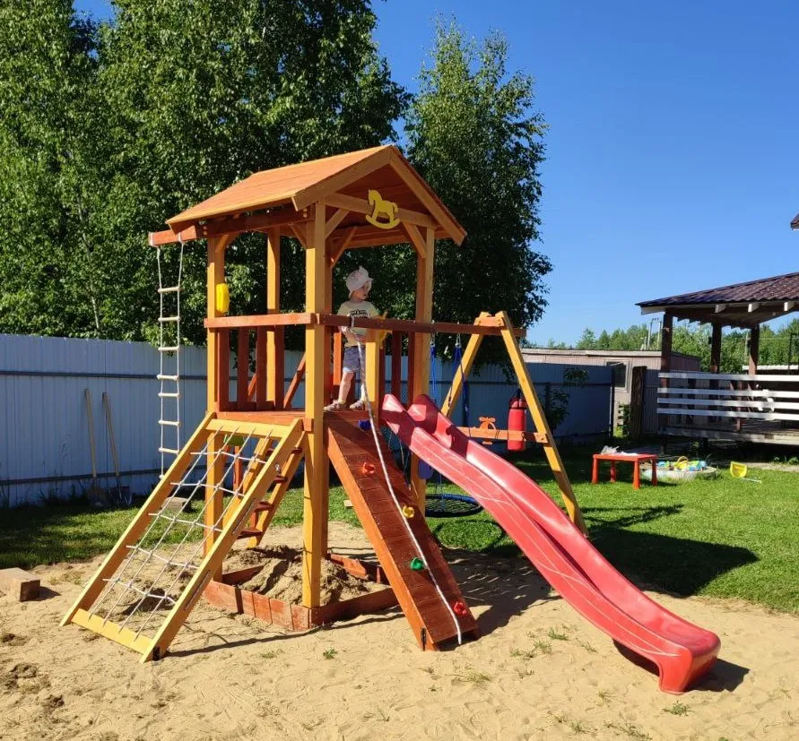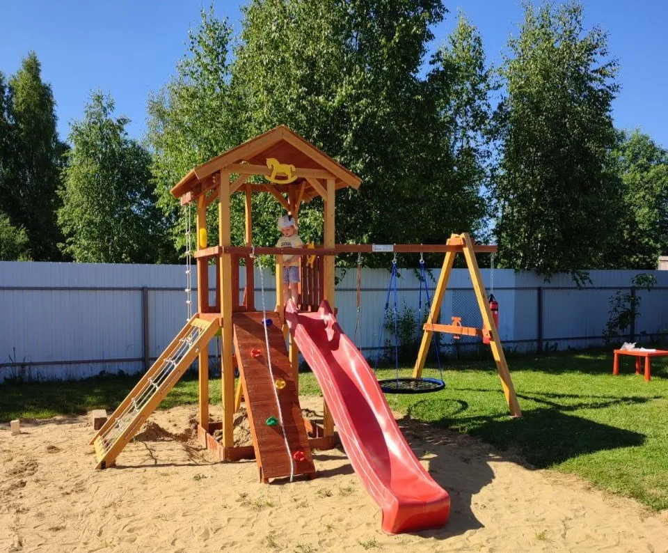Детская площадка Савушка 4 - выбор Ваших детей для активных игр на даче или во дворе. Изготовлена из качественного дерева камерной сушки, оснащена бельгийскими комплектующими и соответствует ГОСТ. Площадка включает различные элементы для развития и развлечений: качели, горка, скалодром и другие элементы, которые обеспечат детям веселье и безопасность.