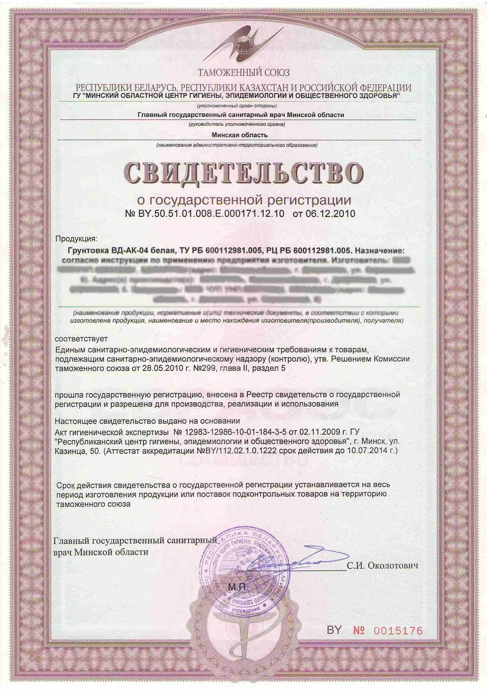 Сертификат соответствия СанПиН - Грунтовка
